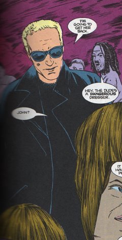 I first got interested in Hellblazer back when Brian Azzarello started writing the title. At that point I was heavily into 100 Bullets and would read pretty much anything with his name on it. Those were good comics, but I had trouble getting a grasp on exactly what John Constantine could do. I knew he had some kind of magical powers, but beyond that? No clue. I’m still not really sure about the dude’s powers even after reading this arc which comes from his earliest adventures (Hellblazer #14-22), but I still really like this enigmatic character. The funny thing about jumping into any Constantine story is that you have no idea if the old friends/acquaintances/enemies/lovers he runs into have been established in previous comics or just made up by the author. This story surprised me because of how far away from the John Constantine rubric it runs. You’ve got John joining up with some hippies, liking it, trying to find a missing girl and sporting (get this) a BLACK trench coat and even sunglasses, instead of a tan one. Remember how angry people were when Keanu wore the black coat in the movie?