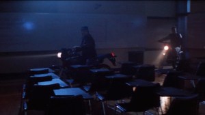 When THIS plan fails, the teacherbots make fake phone calls to the leaders of both gangs to get them to meet at the school to kill each other instead of, again, just killing these kids. This is when things go super-bananas. You’ve got dirt bikes and explosions in school, robot fights, the reveal of some of their awesome weapon systems and the uniting of the two goings (uh, spoiler warning?). While Cody and the leader of the Razorheads are searching the school to take down the teachers (“I’m going in there to waste some teachers – are you with me?”) they actually drive their motorcycles into the classrooms and around the room. Twice!