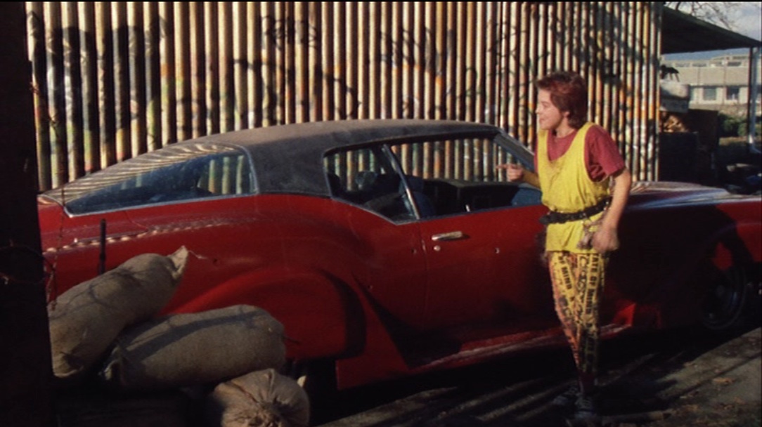 He discovers the truth about the teacherbots and instead of just straight up going after Cody, the older one concocts this ridiculously complicated plan that includes killing some people and sparking a war between the Hearts and their rivals The Razorheads. Wouldn’t it just make more sense to, I dunno, crush him with your insane robot strength? So anywhere, there’s a gang war and we really get to see the Hearts in full form. Again, notice all the purple and yellow. At one point, Angel gets pulled over and they accuse him of wearing gang colors and he’s only got yellow and purple on. That’s just hilarious to me.