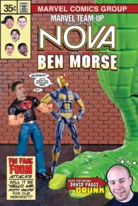 Ben remembers his going away presents from Wizard. Look at those handsome devils in the top left corner. I’m on the bottom left. Cooler by far, though is the Nova and Flash playing frisbee piece. You’ll have to click through to check that out though. Plug!