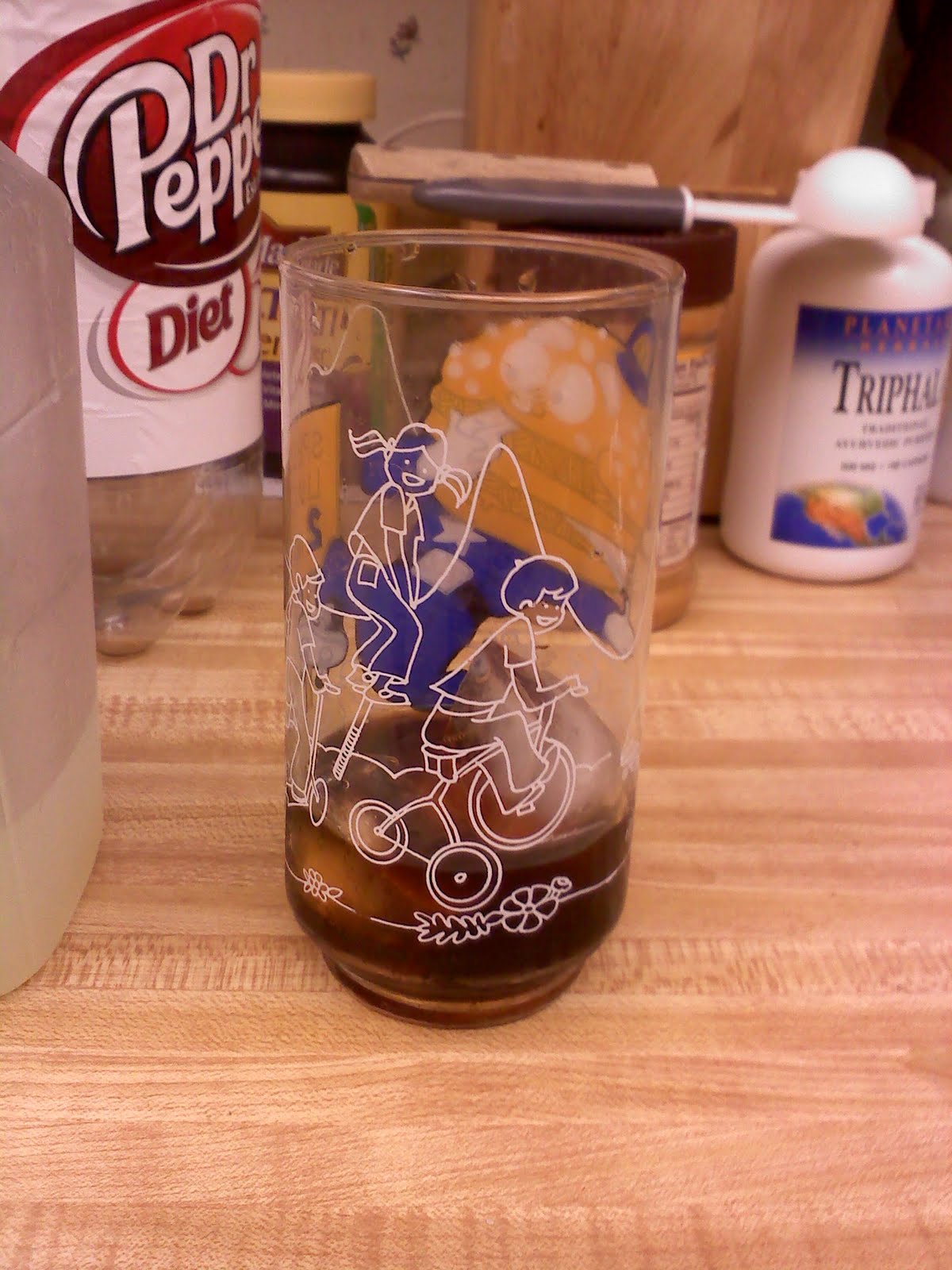 Last night I found myself in an unfortunate situation. I had discovered a big bottle of Teacher’s Highland Cream Scotch Whisky, which is amazing. I tried it out with the very last of my Diet Dr. Pepper (gotta watch my figure now that I’m just sitting around all day for the foreseeable future), but then I was left with nothing to mix my next drink with. What’s a boy to do?