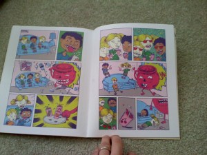 One of the many perks of working at Wizard for a dyed in the wool superhero fan like myself was getting exposed to some of the more alternative sides of comics. Between going through the library and borrowing books from friends who are way more knowledgeable about these things than I am, I feel like I’ve just barely started to uncover the tip of the indie iceberg. So, as you might imagine, I’ve heard a lot about Mome, the indie comics anthology that Fanta puts out (those guys are amazing), but I’ve never read one until Vol. 14 and I definitely liked it. I will be completely honest, I don’t think I understood a lot of these stories, but I kind of like that. It’s like watching an experimental film, but with cool art. By far my favorite strip was called Kool-Aid Comic by Jon Vermilyea. I like the simplicity of it, the subject and the art. It all comes together in a fun little comic, of which you can peep a page or two of below. Fun stuff and I’ll definitely be on the lookout for future Momes.