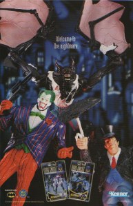 This is one of those every-other-page ads. You get the top one first on the right hand, then turn it and BLAMMO, you’ve got these crazy-detailed figures of Joker, Penguin and Man-Bat staring back at you. I was a huge fan of the Legends of the Dark Knight line from Kenner in the late 90s along with this line’s predecessor which was an Elseworlds-inspired line called Legends of Batman and featured pirate Batman and even Az-Bats. What I liked about LOTDK was that the figures were bigger and they were a lot more detailed. I have Scarecrow and Bane in my collection, which aren’t pictured in the ad, and I remember being really excited about them. That’s still my favorite Scarecrow figure of all time. I almost picked up the Joker one too. I believe he looks so buff because his suit actually explodes off of his body. These ads were scanned out of 1998’s Major Bummer #12.