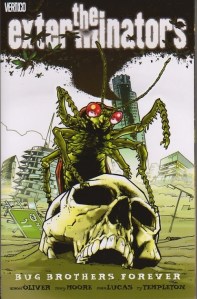 And, considering I’m talking about a comic book here, you can’t ignore the artwork. For my money, no one draws a creepier bug than Tony Moore, who can be considered the regular artist on the book since he pencilled 17 of the 30 issues. The other artists do a good job keeping up Moore’s aesthetic while using their own styles, but none of them quite hit the absolute creepiness of the swarms Moore did. I really wish he could have stuck around for the full series, but he had Fear Agent to do, a book I’ve never read, but have heard is very similar to Exterminators (but in space). I know that a few people from back in the day at Wizard couldn’t stomach reading Exterminators because of how gross the bugs look (we used to read new comics at lunch all the time, which didn’t help).