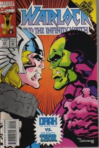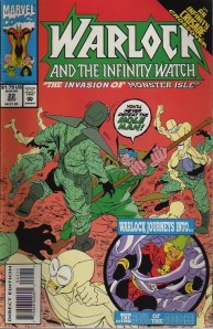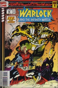 It was bound to happen. It’s not like I could have 100% luck liking these comics I picked at random and let me tell you, these four issues of Warlock And The Infinity Watch from 1993 and 1994 written by Jim Starlin and drawn by Tom Grindberg (21, 23, 24) and Angel Medina (22) are just bad. It doesn’t help that 21 and 22 are Infinity Crusade tie-ins while 23 and 24 are part of the four title, 13 issue Blood and Thunder Thor crossover and I have very little working knowledge of Warlock and his team aside from what I’ve read in the current Guardians of the Galaxy and Infinity Gauntlet. Oh, also, I hate Grindberg’s art. He’s like a less anatomically correct and more sloppy Mike Mignola. And I love Mignola, which got me thinking about how fine the line between art I like and art I don’t is. I wasn’t going to even bother scanning one of the pages, but since these covers don’t seem to be online anywhere and I was scanning anyway, I figured “what the hell.” You can see the last two covers with your own eyes. I have no idea how the inker and colorist figured out what belonged to which character.