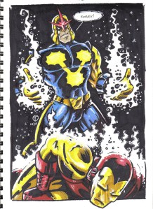 Now that I’m done hyping myself, here’s a couple cool things my friends are up to. Ben got a brand new Nova sketch of him standing triumphantly over Iron Man.