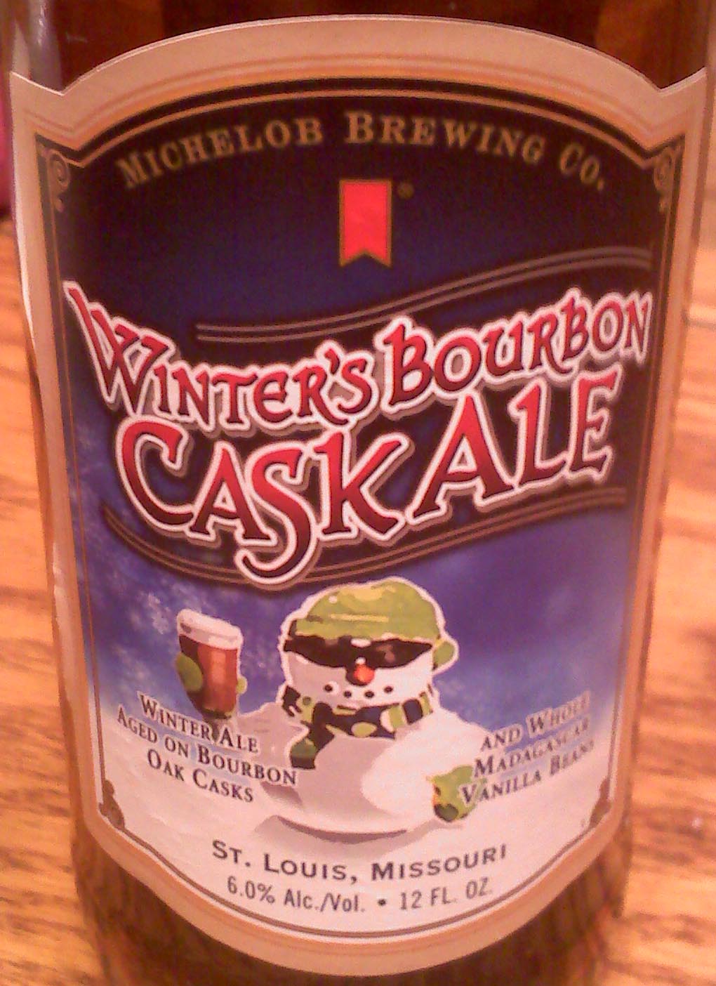 I first had Winter’s Bourbon Cask Ale last holiday season when my folks came out for a pre-Christmas visit. We went to one of the area beer stores, so it on the shelf and thought it looked pretty festive so we gave it a shot and both liked it. And my dad really liked it, so much that I got some for him for Christmas because he couldn’t find it back home in Toledo (I didn’t realize it was made by Michelob, but I found out they don’t necessarily distribute their specialty beer everywhere, which is a bummer).