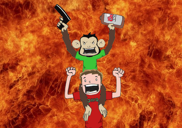 And, finally and most importantly, by far the coolest thing about the new site has got to be the rad logo. Rickey (of Cool Kids Table and Rowdy Schoolyard fame) drew the image of me and the monkey. This has been a project months in the making and he really killed it. The only problem? I didn’t realize how friggin’ small the area for the image would be. Ah well, I think it looks pretty fantastic. Thanks also has to be given to Em who helped me figure out the fonts and color for the logo along with the colors for the rest of the site. As of now it’s 3:19AM, I’ve been sitting at the computer since about 9:00PM and the site still isn’t being recognized when I type it in. I’m hoping it will just take some time and am tempted to wait it out, but I’m pretty exhausted, so I’m going to head to bed. Hopefully I’ll wake up to my brand new site. Night!