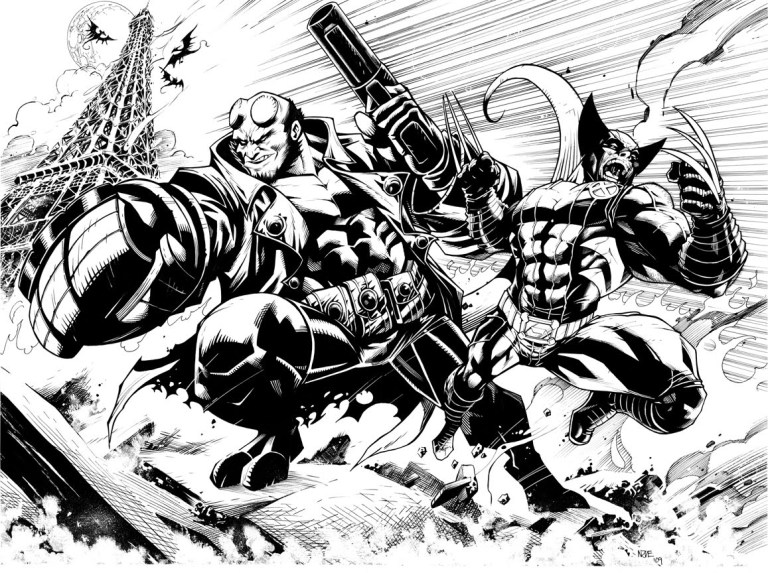 Holy crap, this Hellboy and Wolverine piece that WildStorm’s Oliver Nome did over on the Gelatometti blog is the shiz.