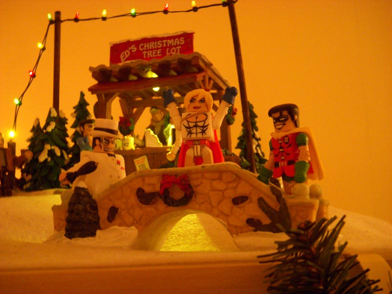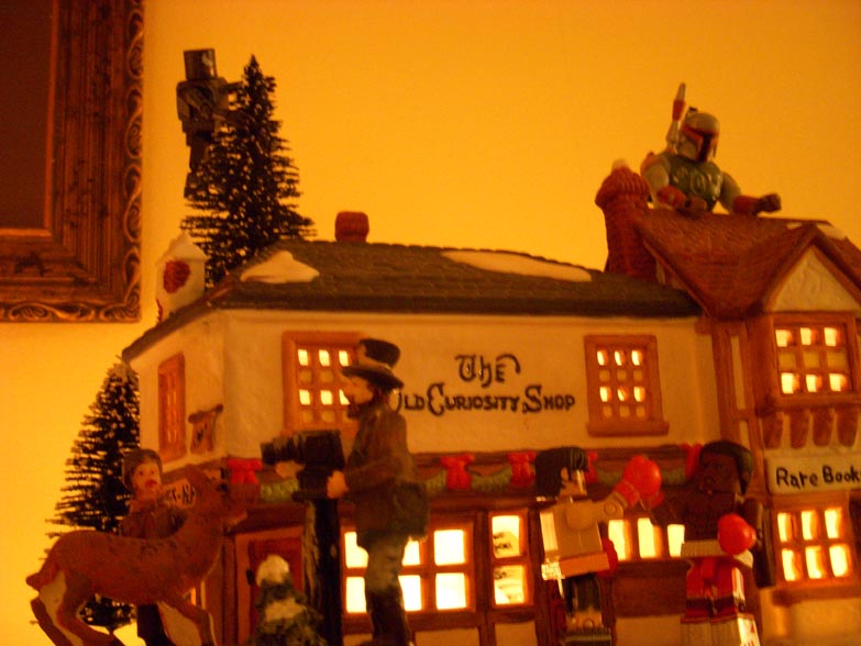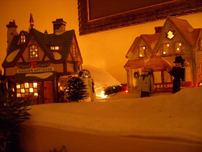 Last year Em was really excited to put up a full-on Christmas village in our place. We had purchased a giant bookshelf that year and decided it would double as our mantle. She set the whole thing up and it looked pretty fantastic, but it was clearly missing something: action figures. She graciously let me add a smattering of MiniMates and Kenner Star Wars toys and I think it turned out pretty well. Hit the jump for the full experience.