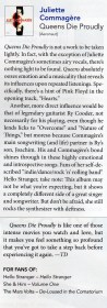 All told, my output included Amy Macdonald’s This Is The Life (Sep./Oct. 2009), Arizona’s Glowing Bird (Nov. 2008), Courtney Fairchild’s 11 Chances (Jun. 2009), Erin McCarley’s Love, Save The Empty (Jan./Feb. 2009), Hinder’s Take It To The Limit (Dec. 2008), Juliette Commagere’s Queens Die Proudly (Dec. 2008), Laura Izibor’s Let The Truth Be Told (Jun. 2009), Raine Maida’s The Hunter’s Lullaby (Sep./Oct. 2008) and Tina Dico’s A Beginning, A Detour, An Open Ending (Mar./Apr. 2009). To be honest, I hadn’t heard of most of these artists when first given the assignments, but I really liked Arizona and Laura Izibor. I ended up reviewing a lot of records by women that I didn’t really like, but I swear it’s not because I dislike lady singers, it was just bad luck of the draw (I’ve been mentally putting together a list of rad female singers in my head for a while now that I’ll get to soon). Anyway, here are the record review scans. You can’t really see it, but the images below are in the same alphabetical order as the list above, so enjoy. I hope you have as much fun reading them as I had writing them.