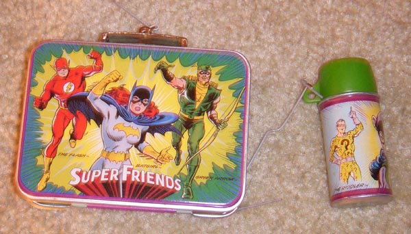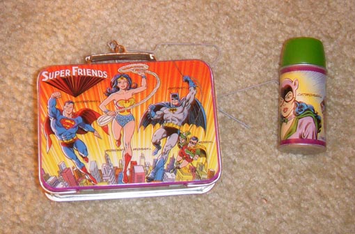 The coolest part about this lunchbox and thermos ornament set is that the lunchbox actually opens and you can store the thermos inside. Also, check out that art! Superman, Batman, Wonder Woman and Robin on the front? Of course, makes perfect sense. But Flash, Green Arrow and Batgirl on the back? That’s where it’s at for me. Then you’ve got Catwoman and Riddler on the thermos. Super cool. Here a better look at the rest of them.