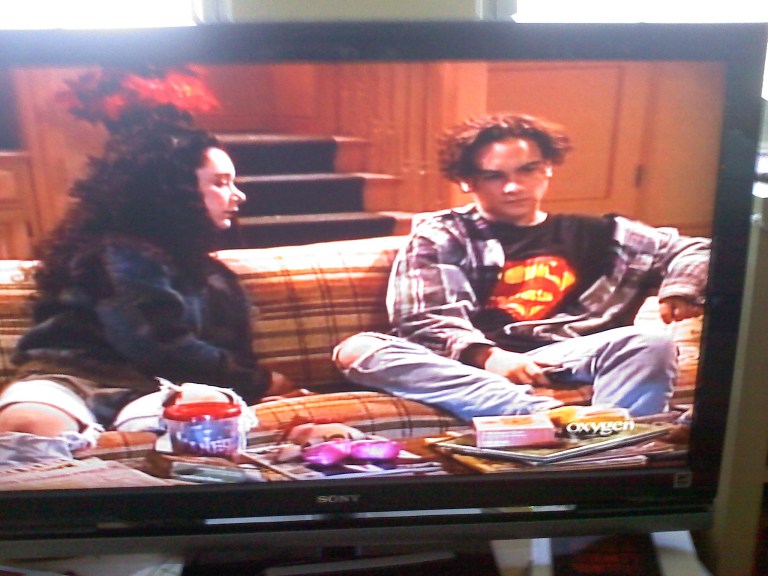 Hey, I actually remember which episode this one was taken from! It’s called “It’s No Place Like Home For The Holidays” and it’s a Christmas episode in which everyone gets snowed in in various places. Darlene’s at David’s house, where they have a fight, yet still exchange Christmas presents (Darlene gives David some art supplies, David gives Darlene an original animation cell of unspecified origins). Anyway, the big comic reference in this one is, obviously, David’s Death Of Superman T-shirt. Being the comic book event that got me into reading comics on a regular basis, I’ve got a soft spot for The Death Of Superman and probably geeked out when I saw this back in 1992. You can order your own online, just give it a Google and you can choose from all kinds of variations (no yellow in the shield, more blood, etc.).