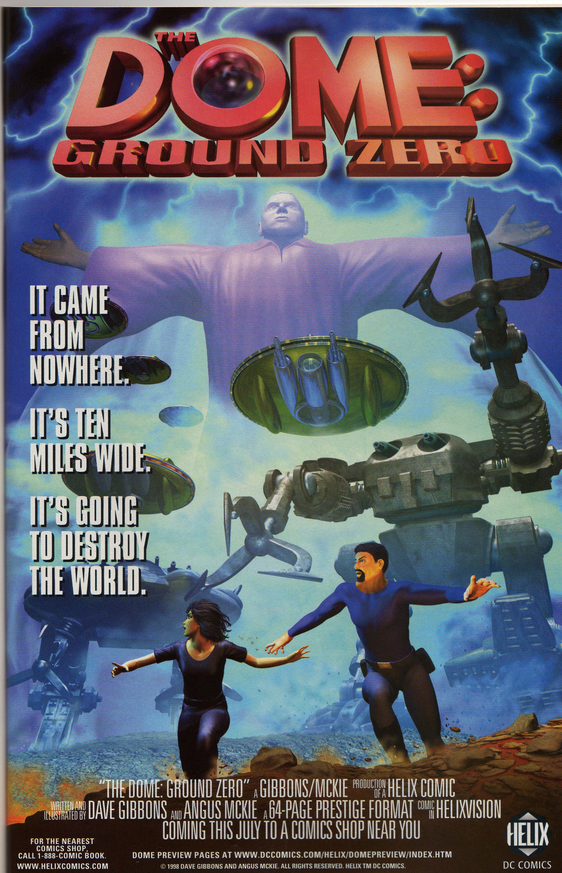 After talking about Cyberella over in today’s Roseanne Comics Cavalcade, I figured now would be a good time to run this ad for another Helix comic called The Dome: Ground Zero by Dave Gibbons, Angus McKie and some computers. Yet another ubiquitous ad for a comic I didn’t read in my formative comic reading years. According to the Wiki page, Gibbons wrote it and laid it out, then McKie drew it and someone (maybe McKie? it’s not all that clear) went in and enhanced it with a computer. They also say it was pretty critically acclaimed, but I don’t know anyone that’s ever read it. Anyone? Bueller?