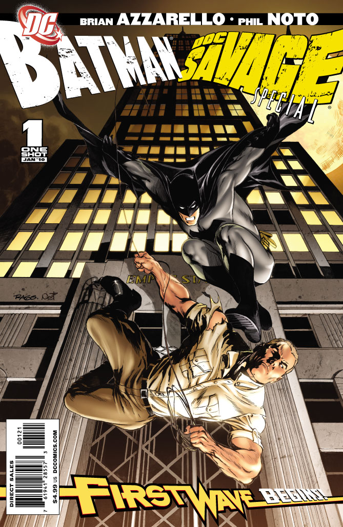 I’m not sure what it is about this pulpy noir pocket universe that DC’s got brewing with First Wave, but I’m really looking forward to seeing what comes out of it. It started with the Brian Azzarello-written, Phil Noto-drawn Batman/Doc Savage Special 1-shot which was both beautiful and a ton of fun to read. I’m no fan of Doc Savage, not because I dislike the character, but because I haven’t been exposed to him. I tried reading Tom Strong who takes more than a few plays from the Savage playbook and never got into it, but I did really like the pulpy stories in the Lobster Johnson mini series from Dark Horse and the Orson Randall stories in Immortal Iron Fist which were also inspired Savage. The aspects of those two stories that I really dug were the heroes’ network of helpers and of course, that’s something Savage brought to the table and show up in the special.