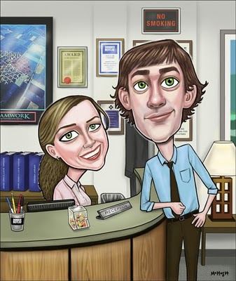 And for one more piece of art, I just saw this piece by Jim McHugh portraying early Jim and Pam from The Office over on his McIllustrator Blog. It’s a good one I recommend for your bloglines or RSS feeds.