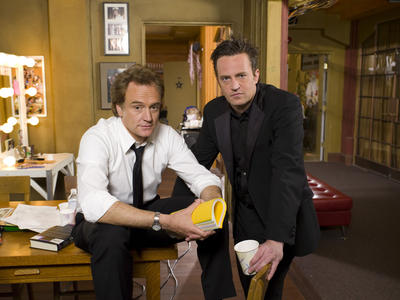 The concept is that an SNL-like show set in California starring DL Hughley, Sarah Paulson, Nathan Cordrry and a series of other actors including Big Bang Theory’s Simon Helberg gets taken over by former head writer and producer Matthew Perry and Bradley Whitford after their old boss loses it on TV and tells people how it really is. Meanwhile, Amanda Peet plays a brand new executive at the TV station who’s first day coincides with the old boss’s meltdown. It’s her idea to get Perry and Whitford even though her boss/fellow exec Steven Weber isn’t so sure about it. From there you get fictionalized accounts of the politics of television from the boardroom to the writers room and a series of relationships like Whitford and Peet’s burgeoning romance and the crazy-complex history between Paulson and Perry who have dated and broken up more time than Ross and Rachel on Perry’s former show.