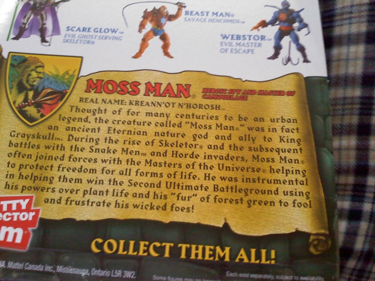 I’m not sure if you can read all the text from the bio, but it basically says that Moss Man is the Swamp Thing of the Masters of the Universe universe. That’s pretty rad. I’m hoping Mattel will start doing something with these characters like a new comic or a video game. That would be sick!