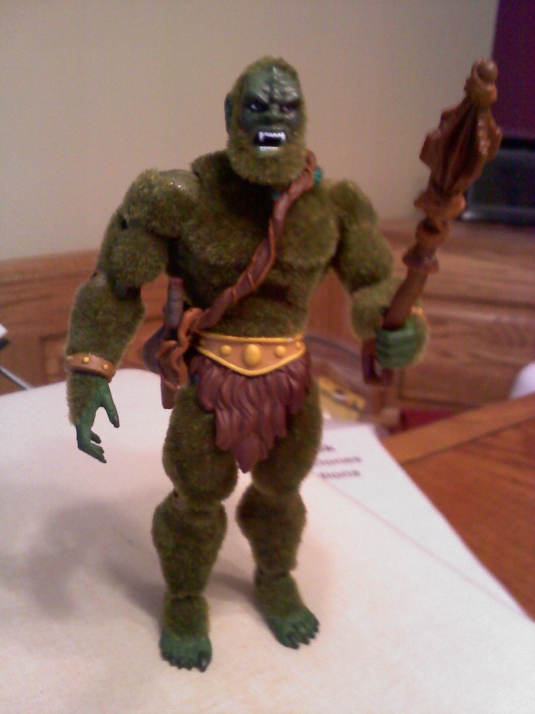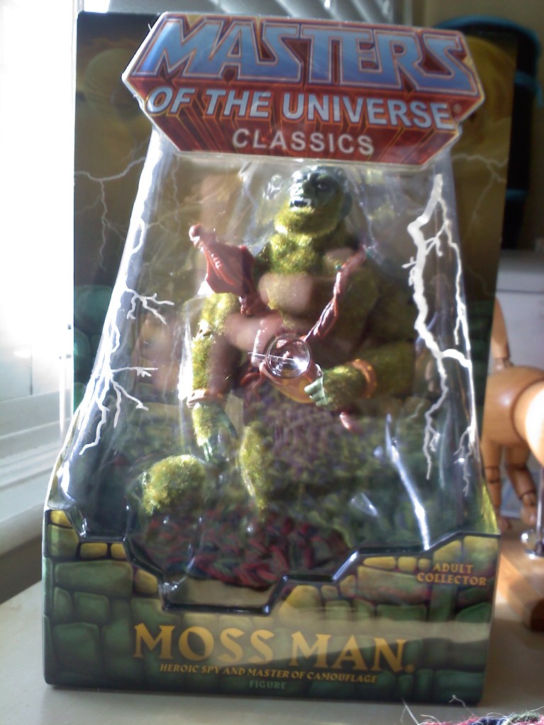 Overall, this figure gets…how should I rate these things? Toyboxes! Okay, Moss Man gets 4.5/5 toyboxes with that half a point off for the crazy smell. Major kudos for the flocking and multiple heads, which I’m sure will please most fans (not, of course, the ones who say they love toys, but really just hate everything, there’s no pleasing those guys). I also really dig the removable knife, which looks like it could have just been part of the sack sculpt. The score might drop down if the flocking doesn’t hold. A few pieces came off while I was popping the head on and off, but seeing as how he’ll probably just sit on a shelf forever (or until my He-Man comic book gets picked up) it shouldn’t be a problem. Like all of the mattycollector.com-exclusive MOTUC figures, Mossy here sold out. If you can, I highly suggest getting a subscription if you can spare the cash. It’s the way to go and even if you get a figure you don’t want, I’m sure you wouldn’t have a problem unloading it on eBay or some other toy swap site.
