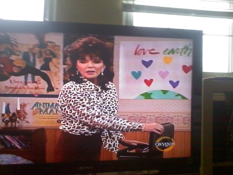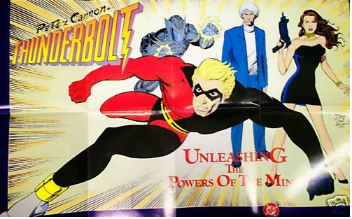 This one’s kind of a double whammy with a DC Peter Cannon Thunderbolt poster over Jackie Collins’ right shoulder and an Animal Man promo poster below that. As per usual, though, I had a bitch of a time trying to find the Animal Man poster and gave up. I did succeed in getting the Thunderbolt one though.