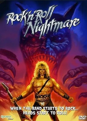 Anyway, I only kind of half paid attention to RNRN, but I still thoutoughly enjoyed it, even though the beginning eerily mimics a story I’ve been working on since last summer. Anyway, it’s about this metal band that goes to a remote-ish house to record their new album, but things don’t go as planned as his band members and their groupies start getting eaten by some evil force which takes over various peoples’ bodies. Then, at the end, the demon turns into Satan and the lead singer from the band reveals that he’s an archangel. There’s some weirdness about shadows and whatnot at the end, but their battle is pretty rad. I really wish I had watching this flick at a Manly Movie Night or with a few friends because it seemed like there were plenty of laughable parts. I mean, hell, just look at that DVD cover. It’s a think of weird glory.