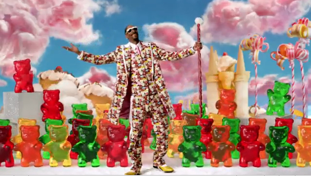 The video is kind of a cracked-out combination of Candyland and Willy Wonka’s Factory with lots of sexy ladies. Perry seems to be moving away from the pin-up style and into more risque (she spends a good part of it lying naked on a cloud) and weird (cream shooters that attach to her lingerie). I wonder if Lady Gaga, who blew up after Perry did, was an influence on her. Either a “I didn’t think someone like that could be successful” or “hey, I wanted to do that crap three years ago, but they said I couldn’t!” Well, whatever the case, any video that gives me Snoop Dogg leading an army of angry gummy bears who get wiped out by boob cream is on my faves list.