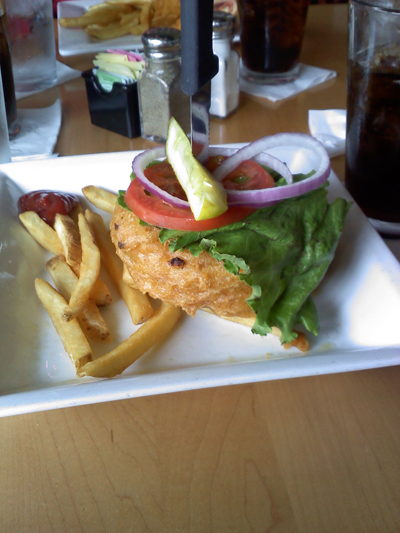 Our buddy Heather took us to Eddie George Grille 27 (the added “e” makes it fancy, just ignore the 70 TVs playing sports, some of which aren’t even in season right now) in Columbus after our reunion shenanigans. They ordered deep fried cheeseburgers (the missus snapped a picture of hers with my phone at my request) while I got a deep fried Italian sandwich. Mine was awesome and so were the burgers.
