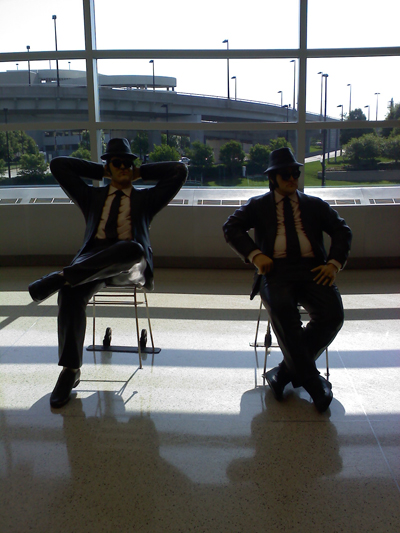 And finally, the day after the wedding we had a crazy-early flight out of Midway in Chicago that my parents were nice enough to drive us to. While walking through this strange new place, I was delighted to see them celebrating Chicago’s two finest sons Jake and Elwood Blues. There were actually two statues, but with the sun coming in through those huge windows, this was the best I could get. The other photo was completely washed out.