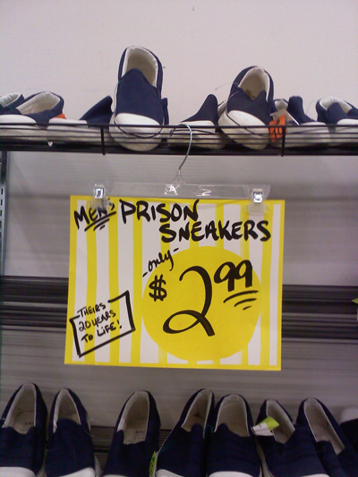 First off, I want to give you an idea of what Building 19 is like. In addition to having tons of clothes, books and whatever else you might want, you can also buy prison shoes for $2.99.