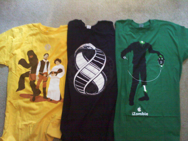 After having such good luck the first time around with TeeFury’s grab bag shirts for $5 each, I decided to jump in once again when I saw they were doing another similar sale a week or so back. And, just like last time, I ended up with two shirts I really like and one I like but wouldn’t have chosen for myself. The Star Wars one is fantastic, poor Han. The missus doesn’t like the iZombie, but I think it’s hilarious. Gotta make sure not to wear that one around the little ones though. The snake Mobius strip is the one that I wouldn’t have chosen, but it’s pretty cool. Does anyone know if it’s a specific logo or reference to anything?