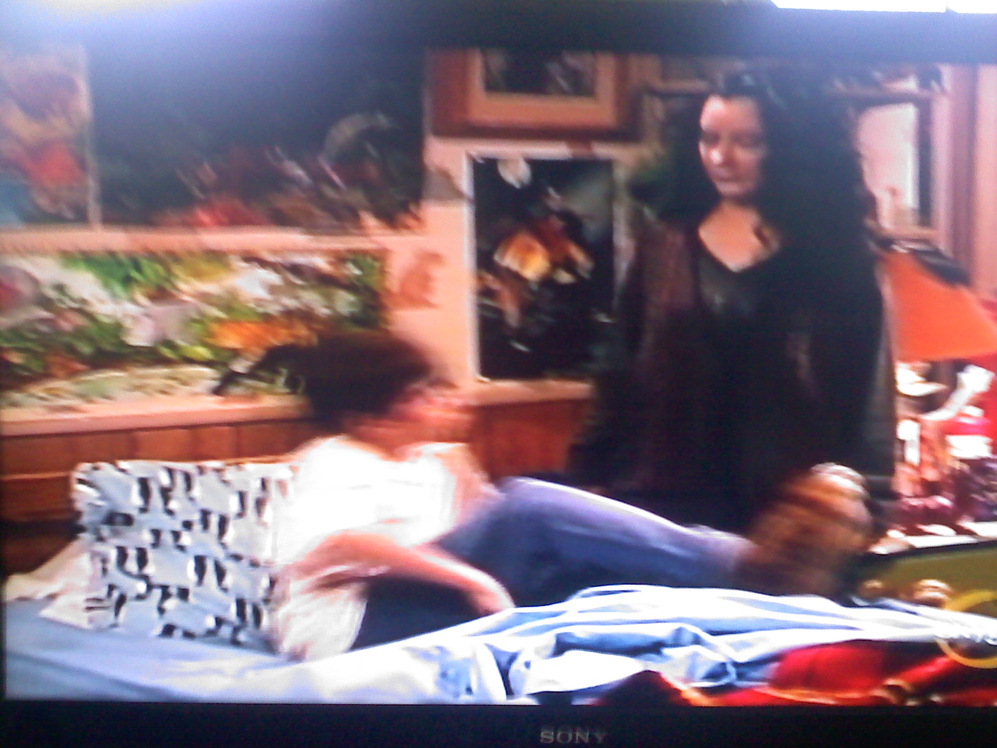 I wish I was better at this whole thing. I tried snapping two separate images of the Robin poster over DJ’s bed (it’s there directly to Darlene’s right, I have no idea what his other posters are, but I think that long, short one is just some animals) and neither of them really give a good view of the poster.