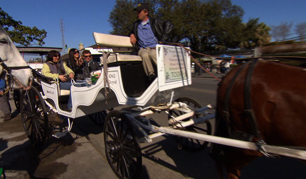 10:27pm – Knight and Jemmye take Alice to the French Quarter. They get a shot in the middle of the day. Makes me want to go to New Orleans. They go on a horse-drawn carriage ride, it has a sign that reads “Just Married.”