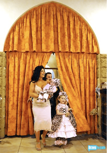 10:51pm – Back in Italy, they’re having one big last dinner where the town gets to meet Audriana. Jeez, it’s kind of shitty that Teresa’s parents staid back with the baby when this is their hometown. I gotta disagree with Teresa, the matching outfits (custom ordered) her girls are wearing look ridic.