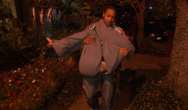Jemmye’s wasted and talking to herself in her room. She’s convinced herself that she’s going to the airport to go home. Oh, there she goes walking out the door. Eric shows up out of nowhere. Ryan’s letting her leave. Ashlee and Sahar go after her. Jemmye literally runs away, but they catch up with her on someone’s steps. Eric literally carries her back to the house.