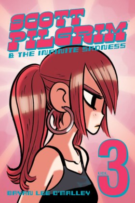 I wound up reading all six volumes in about a 24 hour period which was actually a lot of fun seeing how writer and artist Bryan Lee O’Malley’s art, storytelling and timing had improved over time. It was also interesting seeing how Scott and Ramona’s relationship developed and fell apart as did Scott’s battles with her seven evil exes (I like how she makes a big deal of calling them exes in the movie instead of ex-boyfriends). I still wish the first book telegraphed the weirdness of the world a little earlier, but the second time around it didn’t bother me as much. The movie borrows heavily from this book, which makes sense because it’s all of the set-up for the following. I did a lot of comparing between this volume and the movie because of that and I applaud Wright for being able to pull so much wacky shit off, though I really wish they would have included the line about Scott being the best fighter in town. It’s a short, small line that helps the overall idea be understood better in the comic than the movie in my opinion.