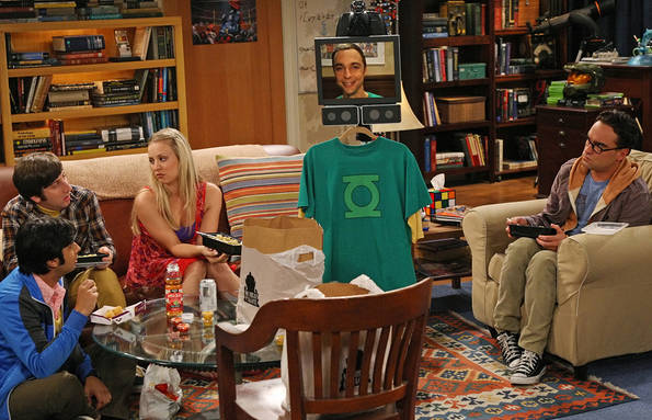 And here we have the Sheldon robot with a TV and a Green Lantern T-shirt hanging from it. He’s decided the world is too dangerous and he needs to protect himself, sending the robot out into the world to interact with humanity.