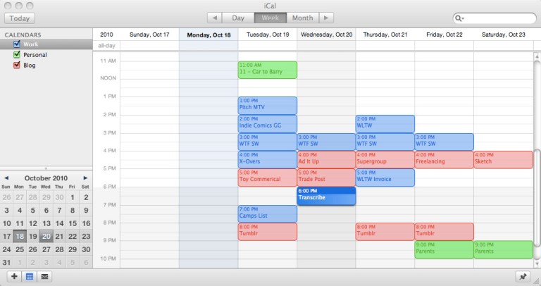 While NeoOffice is the most important piece of software I use (editors tend not to like getting submissions in TextEdit docs), but I’ve also come to rely on iCal, which, as far as I can tell, is very similar to the Google Calendar, which I would utilize if I used more than one computer. As it is, iCal works for me. Instead of using the more detailed weekly view as an hourly schedule, though, I use it more like a checklist. Blue boxes denote assignments, Red are personal blog posts I want to do and Green are personal things I need to take care of. When I finish something, I delete the box unless it’s a recurring event like a birthday or anniversary. As you can see, I’ve got a busy day on Tuesday. I don’t expect to get all that work done, but I’m going to aim high. I load bigger assignments like online lists or magazine features earlier in the week, so I can wear them away by the end of the week. Some of my assignments like WTF Star Wars for UGO.com don’t take a lot of time (I’ve got a folder filled with links to use as potential entries on my desktop) while others can take up a full day, depending on how much I have to do for them. Writing a list takes a certain amount of time, but that number can grow if I’ve got to track down YouTube clips to go along with them, uploading and editing images and sometimes double checking my facts with source material like movies and trades. I’ve made some real dumb mistakes in my writing that haven’t been caught which drives me crazy, so I try to double check things I’m not sure about.