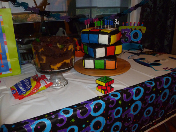 That night, she carved her skeleton pumpkin. On Saturday, while the missus worked on a rad Rubick’s Cube cake for the 80s themed Halloween party we went to that night, I worked on my Lion-O pumpkin and watched TV. Above you can see our costumes. I was pretty lazy and went as Magnum P.I. (only needed to buy the mustache) and the missus, like many of the other ladies at the party, went as an 80s chick. She put way more effort into her costume than I did mine, I didn’t even trim the mustache like I should have.