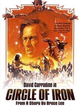 I think the story of the movie Circle Of Iron is probably a much more interesting one that what you see on screen. Bruce Lee wrote the movie as an martial arts film that would explore the differences in Eastern and Western philosophy. Basically, the story’s about a guy named Cord trying to track down a master fighter in possession of a book filled with all knowledge. Along the way he gets help from and fights various characters, four of whom are played by the same person. The original plan was for Lee to play the roles with offers going out to Steve McQueen to play Cord (he denied) and eventually James Coburn who agreed to do it and helped write the screenpaly. They were going to film the movie in 1969, but there were some problems, the production fell apart and a few years later, in 1973, Lee passed away. Some other folks purchased the rights to the screenplay, rewrote it, got David Carradine involved to play the Bruce Lee parts and also hired Christopher Lee, Roddy McDowell and some dude named Jeff Cooper to play Cord.