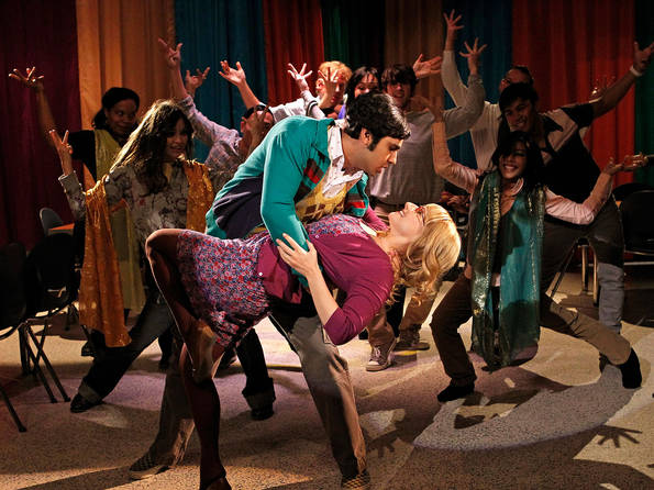 The episode ends with a Bollywood like fantasy dream sequence between Raj, Bernadette and everyone in the university’s cafeteria, ending with Raj opining “Dance number aside, I’m SO not gay.”