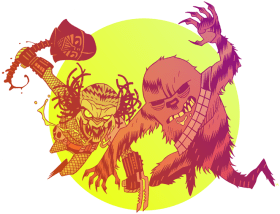 Dan Hipp‘s Wookie vs. Predator art is rad.
