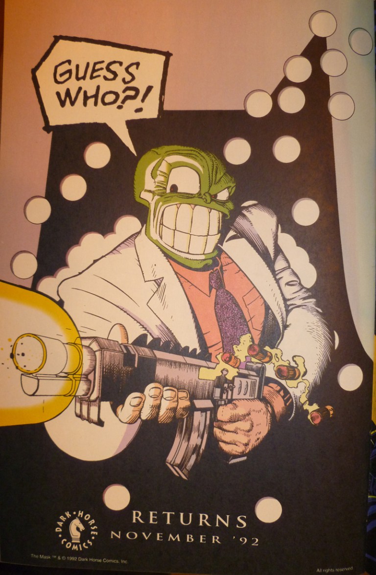 Like a lot of kids my age, my first exposure to The Mask was the Jim Carrey movie. At some point in college I got my hands on the first two trades featuring the character written by John Arcudi and drawn by Doug Mahnke. It’s a lot bloodier and more violent than the film, but it didn’t quite grab me for whatever reason. Regardless, though, I love this ad from 1992’s Predator vs. Magnus Robot Fighter #1 with the Mask blasting through the familiar silhouette of a certain cinematic superhero. Fun stuff.