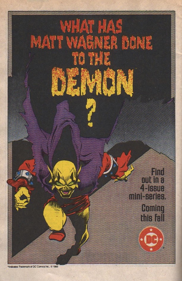 A lot of times, I throw an Ad It Up with a joke in mind or just to bask in the glory of some weirdness. Not this time. I actually had no clue that Matt Wager worked on The Demon. I checked it out on MyComicShop and all four issues really did come out. If I’m reading things correctly, he wrote and drew this book the year after he finished Mage: The Hero Discovered. I haven’t gotten around to reviewing that or Defined, but those are two of my all time favorite comic books of all time. I definitely want to keep my eyes peeled for these issues. Or maybe DC should just throw them together for one of those 100 Page Spectaculars they’ve been doing. You don’t even have to pay me for that idea, just send me a copy.