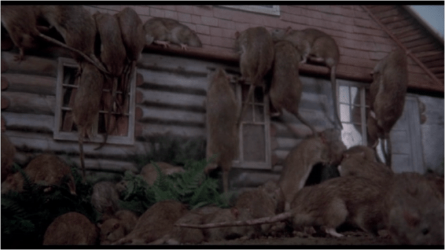 And honestly, the craziness is why you want to watch Food Of The Gods. The way they achieve giant animals on screen is pretty damn impressive. There’s some splicing together of footage that works well and some normal sized animals running all over miniatures, but I was equally impressed by the giant animal heads that show up! The end of the film revovles around this set piece where — also like NOTLD — the survivors are under siege by huge rats. I will say, though, that it’s hard to fully enjoy the movie when you see the scenes where the rodents get shot. Now, I’m sure they didn’t really get shot, but something red hit them with a quickness that, at the very least, didn’t feel great. I hope they were okay.