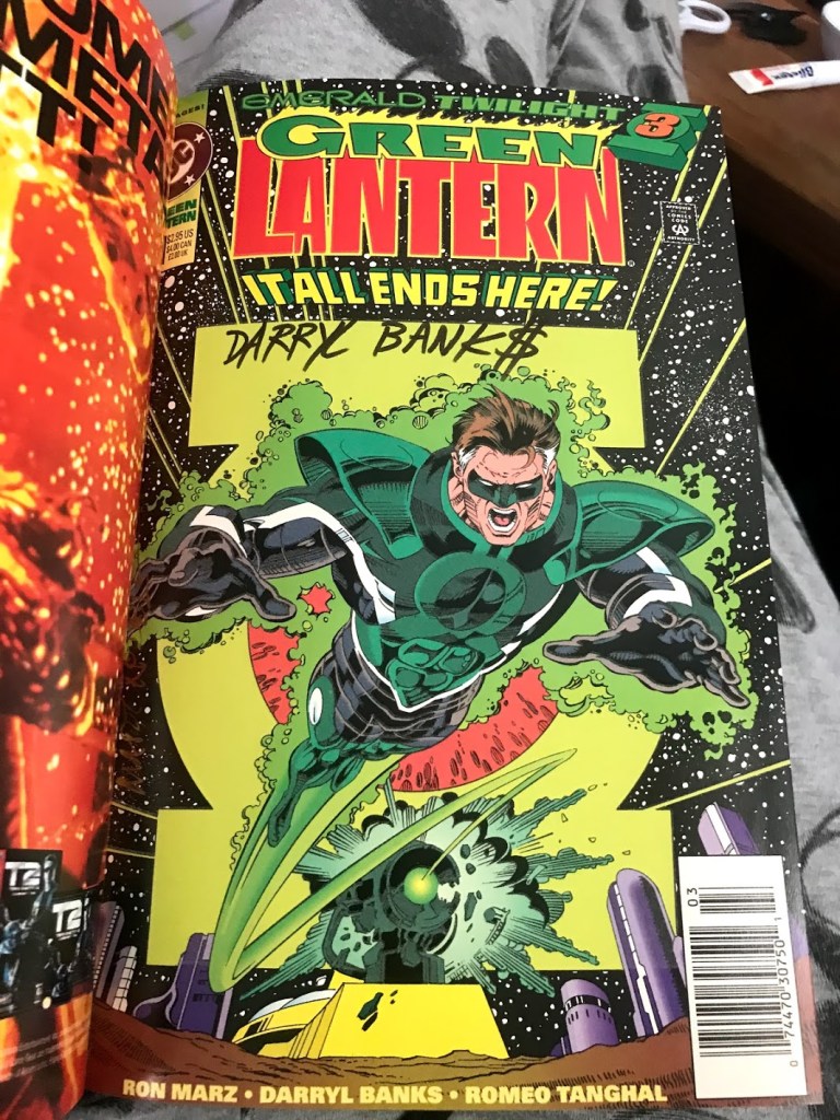 If you’re interested in the links I mentioned in the episode, here’s the CBR interview I did about Goldie Vance. If you want to find out more about McDuffie being let go from Justice League of America, you can read the initial Lying In The Gutters column here and then the news itself about him being ousted here. Finally, enjoy a few pics I snapped while putting this episode together including the fantastic Kyle Rayner sketch Darryl Banks did for me!