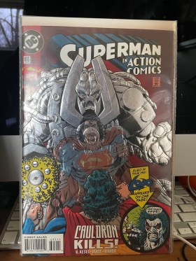 For whatever reason, Kesel jumps in to relieve Roger Stern on Action Comics #695 drawn by Jackson Guice. I don’t remember specifically, but I bet this issue ticked me off at the time because it features a shiny embossed cover for the legendary character…Cauldron? At this point in my life I had a very limited allowance ($5 a week) and this book would have taken HALF of that with its $2.50 cover price. Past Me surely booed this choice, but Present Me thinks it looks pretty rad! Unfortunately, this armored super soldier only makes one more appearance and not until 1997’s Action Comics #731 which I’ll get to…eventually? More importantly, we get even moments of Superman realizing that his powers are going a bit out of control.