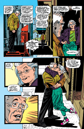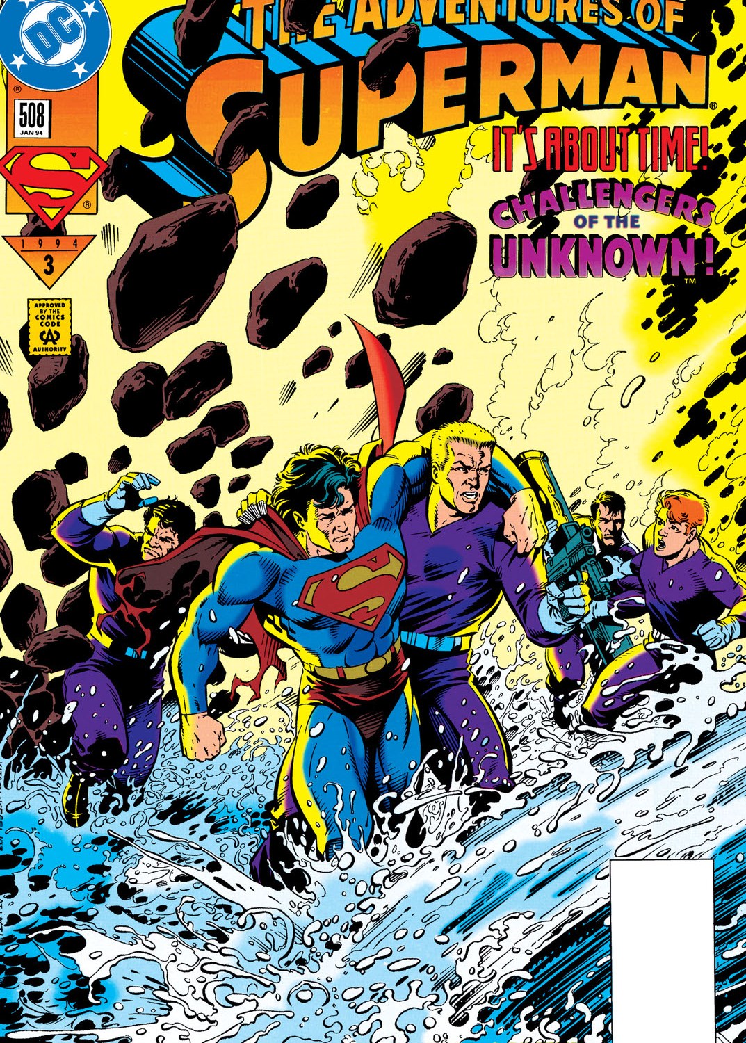 Adventures #508 by Karl Kesel and Barry Kitson once more plays off of an old Jack Kirby book, this time Challengers Of The Unknown, about a quartet of purple-clad adventurers similar to the Fantastic Four, but without superpowers. This issue actually takes place between the first two panels of the last page of Challengers Of The Unknown #4 from 1958 which is on the DC app if you want to check it out. Anyway, they’re chasing a villain named Darius Tiko, “the evil wizard of time” who uses Mandarin-type rings that wind up in equally wrong hands. This is mostly a fun one-off that also features Adam Grant’s funeral. I keep being stunned by all of the emotional ground these books covered and this one is no different.