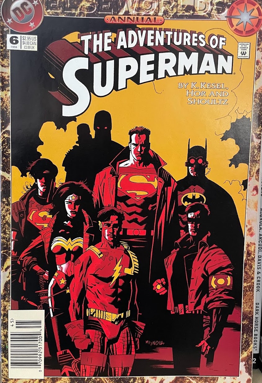 I know we’re in the middle of a major story with tons of moving parts (Supes’ out-of-control powers, the Underworlders’ uprising and Lex Luthor’s deteriorating health and sanity) and I just took a pit stop to cover Superman Doomsday: Hunter/Prey, but now’s the time to discuss the Elseworlds Annuals from 1994. All four major titles along with Steel and Superboy had entries in this series that took the building blocks of these heroes and put them in interesting, different configurations. For a time, Elseworlds was DC’s version of What If? over at Marvel, giving creators a place to toy around with conventions and look at these characters from different angles. I got really into these one-off stories and credit them for launching my love of alternate realities. Over the years, I’ve added quite a few to my collection and was stunned to find that not a single one of these is on DC Universe Infinite, though some of the others are. Go figure.