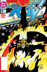 Things are not so serious for Superboy, but he’s got a lot going on in his life too. He appeared in The Ray #1 and 2, which came out with May and June 1994 cover dates. Normally I’d split those up, but they both take place chronologically before Superboy #4. So, in the first Ray comic by Christopher Priest and future JLA artist Howard Porter, the young legacy character with the cool jacket decides to fly off to Hawaii for some R&R. Unfortunately, the giant fiery monster Brimstone — who debuted in the very-important-at-the-time event Legends –followed him there! Superboy flies in to help out and gets blasted which makes Ray think that he died! The next issue, by the same team, starts with Ray burying Superboy with rocks on the beach! The Kid didn’t take it personally, though, and the pair really worked well together this time to stop Brimstone.